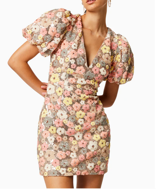 Garden Mini Puff Sleeve Dress In Florals by ELLIATT